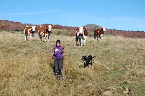 Mont-Fol, les animaux broutent paisiblement. Il appelle : « vesse, vesse, vesse, … ». Les vaches s’approchent pour le plus grand bonheur des photographes.