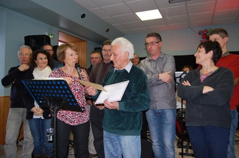 Françoise Laurent a terminé son allocution. Puis avec solennité, elle a demandé à Fernand Gineys de la rejoindre au pupitre. Fernand Gineys s’est vu remettre le titre de Maire honoraire, un titre