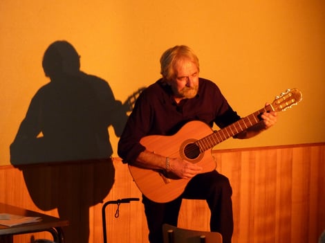 Yves Paganelli dévoile son parcours avec une pudeur empreinte de poésie. Il évoque son enfance à Aubenas chez sa grand-mère, petit bout de femme armée pour la vie « sa vie parfumée de chanson ». Tant pleine de chansons qu’Yves finit par s’essayer à la vie d’artiste. Yves Paganelli a composé une chanson évoquant ses années vécues à Paris « au cœur de ce quartier Latin effervescent… » et il nous y emmène avec sa guitare, rue Mouffetard, la Contrescarpe, puis rue Saint-Jacques, le Port du Salut… il s’introduit dans le monde nocturne des cafés concert avec un mot de Jean Ferrat. Dans les années 76, il chante l’Ardèche, une Ardèche en recherche d’identité, pays vidé de sa substance par l’exode rural « il reste quelques vignes, surtout le bruit du vent ».