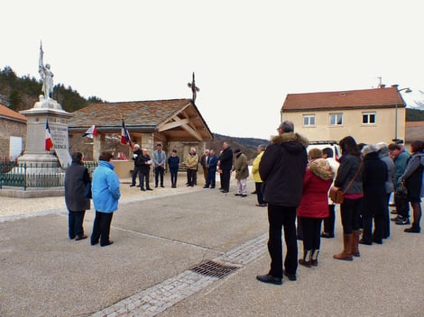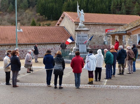 Les flocons de neige ont offert une trêve aux habitants de Cros-de-Géorand venus se recueillir ce vendredi 11 novembre 2016 devant le Monument aux Morts. En