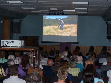 Ce samedi 6 août 2016, Françoise Laurent, Maire de Cros-de-Géorand, était heureuse d’accueillir sur sa commune le réalisateur, Bernard Peyrol, pour la projection de son dernier film. Toutes les chaises de la salle polyvalente étaient occupées et quelques bancs sont venus s’ajouter pour un public nombreux. Bernard Peyrol a situé le cadre de son tournage puis il s’est effacé pour laisser place à l’écran et le public a découvert l’aventure incroyable d’un village-usine. « Pont-Salomon, une histoire de faux » retrace l’émergence puis le déclin d’une industrie du 19ème siècle utilisant l’énergie hydraulique.