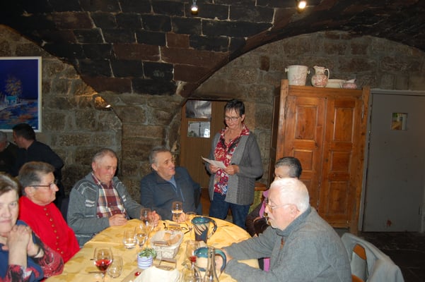 Avant le dessert, les plus audacieux se sont levés pour entonner quelques chansons touchantes ou coquines invitant les larmes et les sourires, avec des refrains repris en cœur dont le fameux : « que la montagne est belle ! ». Les quelques flocons se balançant derrière la vitre ont invité l’assemblée à prendre la route du retour en fin d’après-midi.