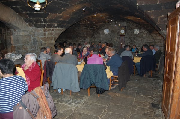 Le village est petit, les élus sont bien impliqués. Le co-voiturage s’organise sur l’esplanade de la Mairie. Ce samedi 25 novembre 2017, la commune de Cros de Géorand, grâce à l’action du Centre Communal d’Action Sociale (CCAS), offre un repas de fin d’année aux aînés. Les autos s’arrêtent dans l’allée boisée du restaurant. Les pavés, arrondis par les années, brillent sous la pluie fine et les anciens traversent la cour de l’auberge de la Besse avec prudence. Les tables rondes drapées dans leur nappe jaune d’or attendent les convives. Sous la double voûte du XVème siècle, on se salue, on s’embrasse, heureux de se retrouver là, le temps d’un repas.