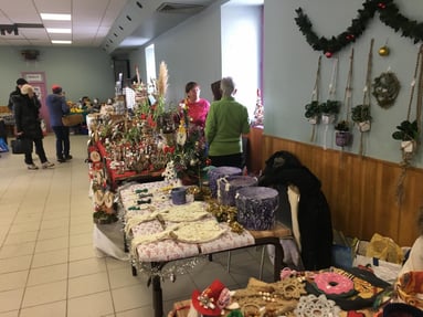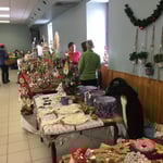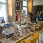 Ce 14 décembre, quelques flocons voltigent dans le petit matin. La chaussée opalescente inquiète bien un peu les 25 artisans et producteurs qui prennent tout de même la route. Un café/croissant permet à l’arrivée de se remettre d’un parcours un peu glissant.
