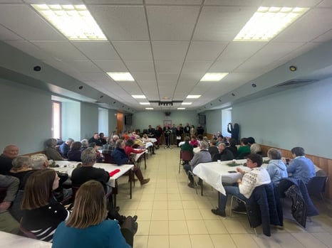 Le CCAS (Centre Communal d’Action Social) de Cros de Géorand intègre sept nouveaux bénéficiaires pour le repas de fin d’année. Ce samedi 7 décembre, les crouseillous de plus de 65 ans étaient conviés pour un déjeuner festif. Sébastien PRADIER, le Maire, a accueilli l’ensemble des participants au restaurant LE GEORAND. La commune comptait sept personnes fêtant leurs 65 ans, mais aussi des absents tenus éloignés par leur grand-âge et/ou par la maladie, mais aussi des crouseillous aujourd’hui disparus. Le Maire sollicite une aimable pensée et une minute de silence.